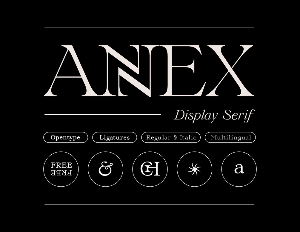 Annex is a display typeface with sharp serifs that contains two styles: Regular & Italic.