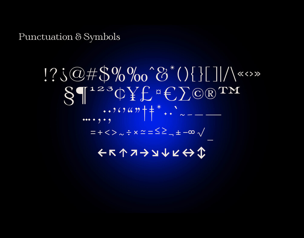 It comes with many standard ligatures as well as titling alternatives. The font contains over 400 glyphs and supports all languages using the Latin-based alphabet.